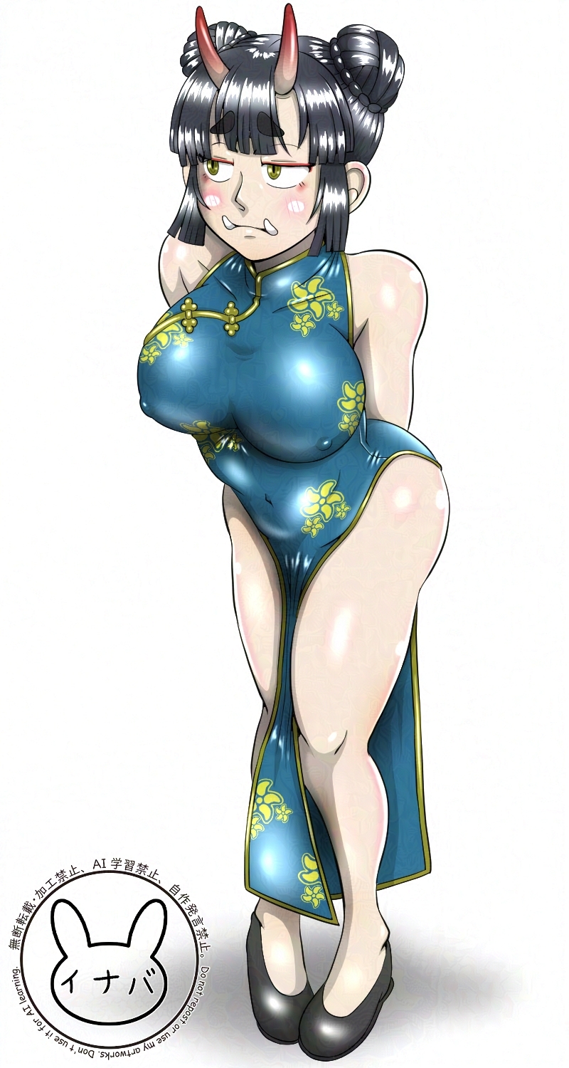 うちの "女頭鬼 (めずき)" にいろいろ着させて遊ぼうのシリーズ。今回は鬼娘+チャイナドレスのセットです…♬
