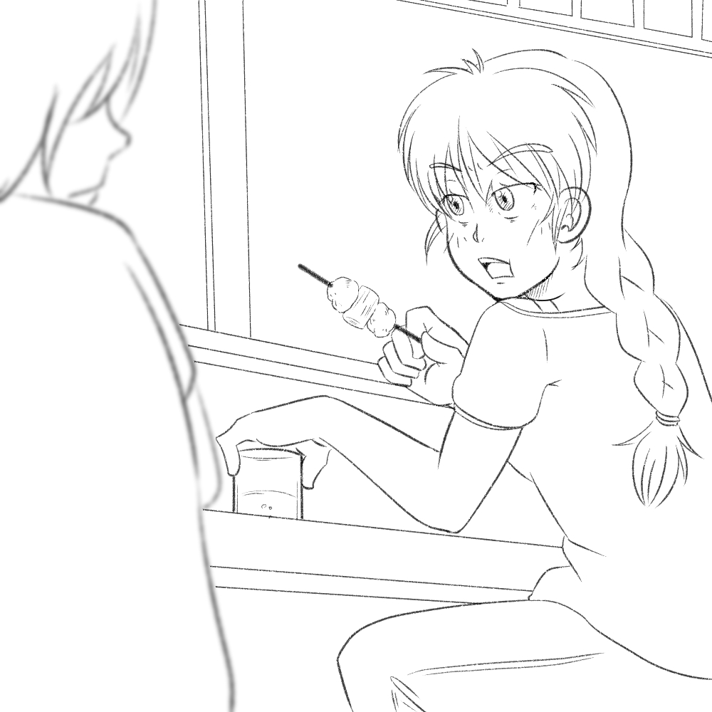 あまりヤル気が起きない中で間に合わせ的な絵ですが、昔はこういう風景を思い浮かべながら "ほっこり" するようなマンガを志していたような気が...。