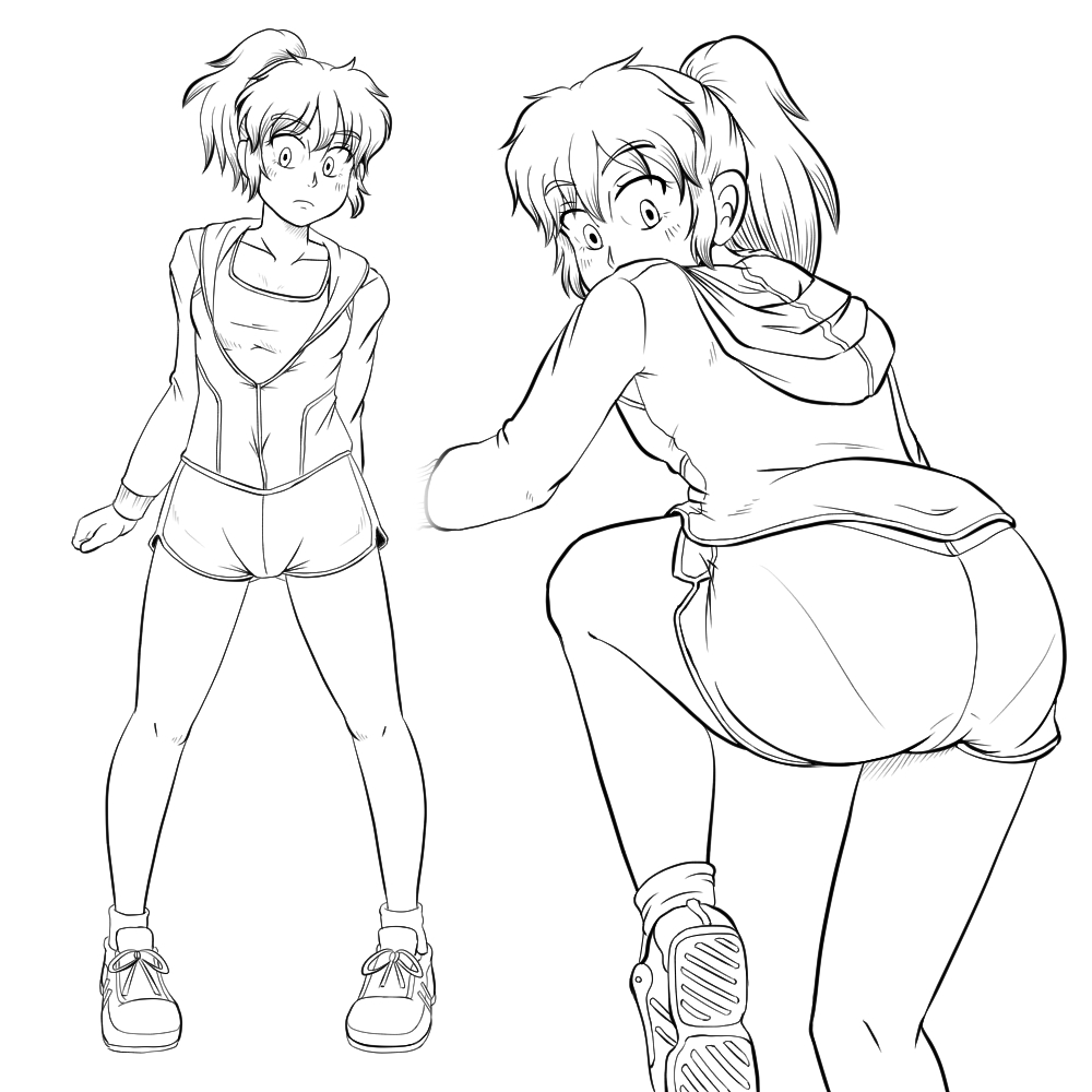 引き続き構図とボディラインの練習。下半身や背中側からの構図を真面目に描かないのはマズいと言うことで、最近はそれらを含めて研究に没頭。ひたすらラフを描き溜めています...。