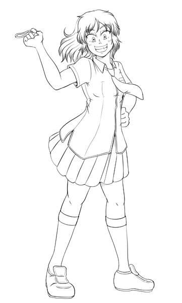 先日のアタリをペン入れしたもの。Yシャツの丈が長いせいで胴がやたら長く見えますが、腰の位置は同じです。手は気持ち大きめの方が好み。