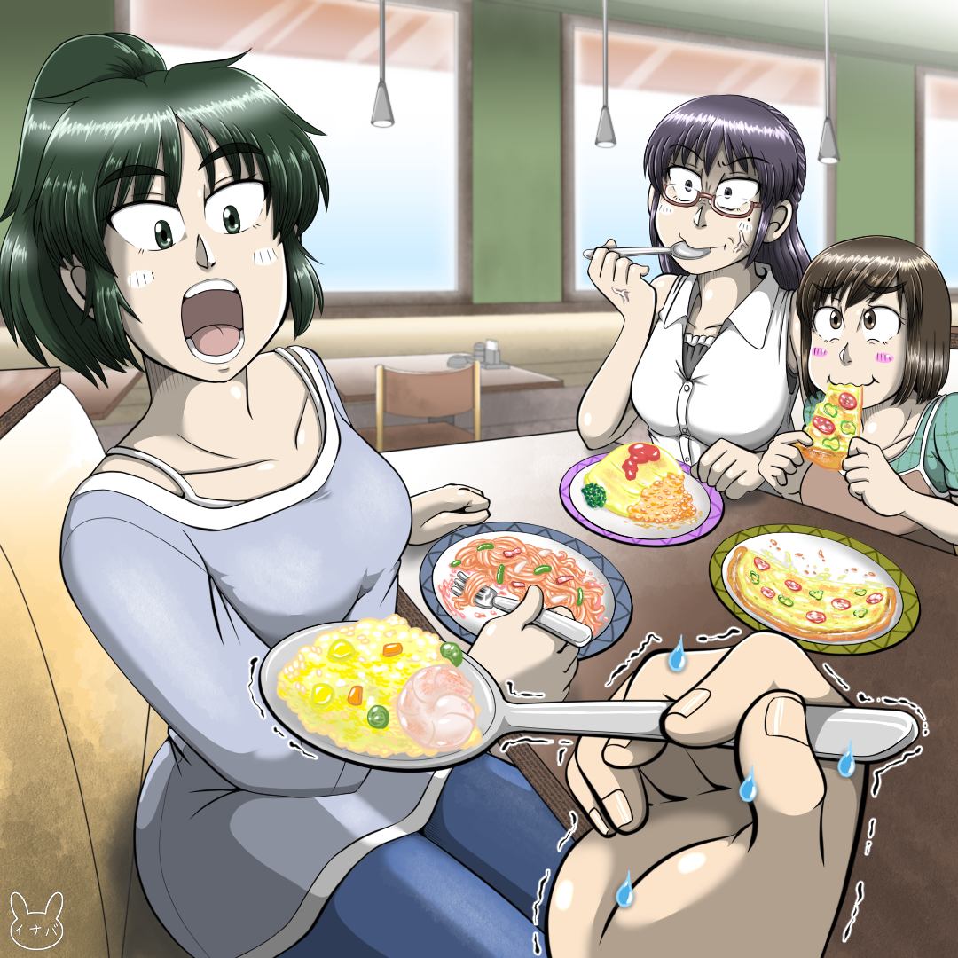 今まで構図が平面的なものばかりだったので、少し、遠近やフカン、アオリなどを意識してステップアップを図ります。その他、背景の練習や食べ物などのオブジェクトの描写についても同様に...。
