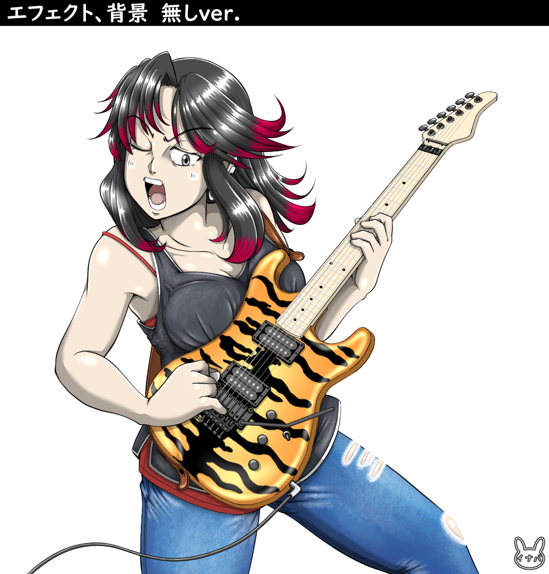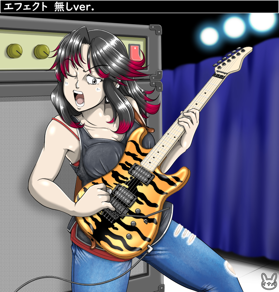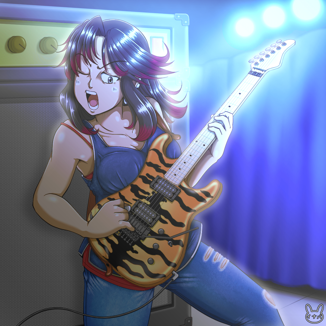『寅年』という事で何を描こうか悩みましたが、鉄子さんにタイガーストライプ柄のギターを弾いてもらう事にしましたw。