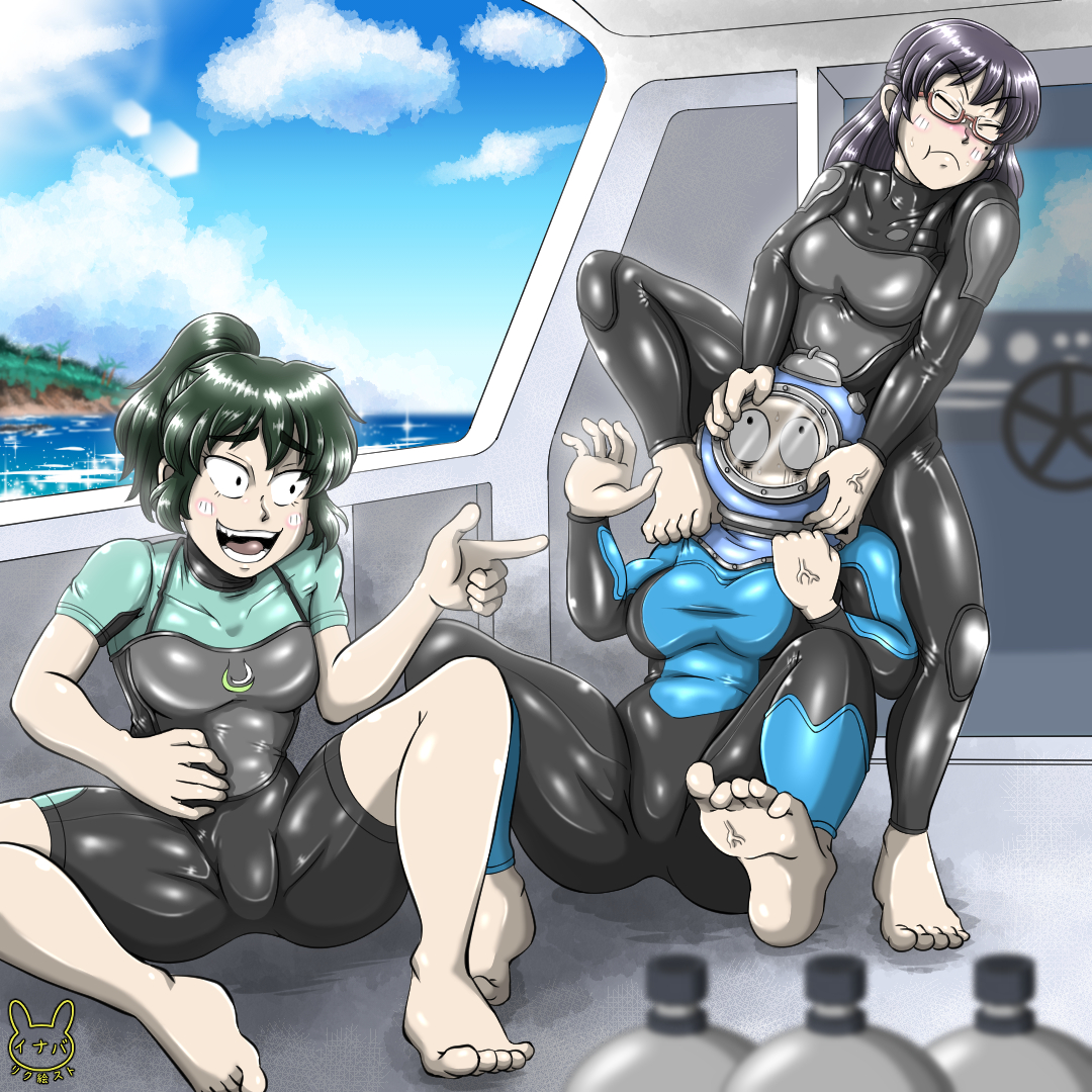 pixiv にてリクエストいただき描いた作品となります。お題は『ダイビングヘルメットを外そうとしている亜子と彩華、その隣で笑っている照子を描いて欲しい。』とのことです。