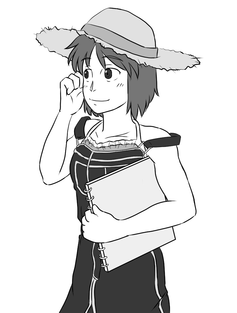 うちの子の1人である「ロケット娘」の、カラー設定というのが全く無かったことに気づきまして、自分のスケブに描き起こしてから10年以上経った現在までモノクロのままってのも可哀相なので急遽こしらえることに・・・。