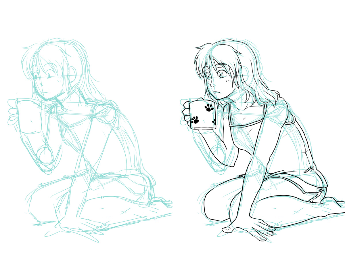 下描きをする際に体のパーツをブロックで描いてデッサンがとれるか試しました。どういう方法でも結局デッサンは難しいのですが、無いよりはマシといった感じでまあまあやり易くはなります。